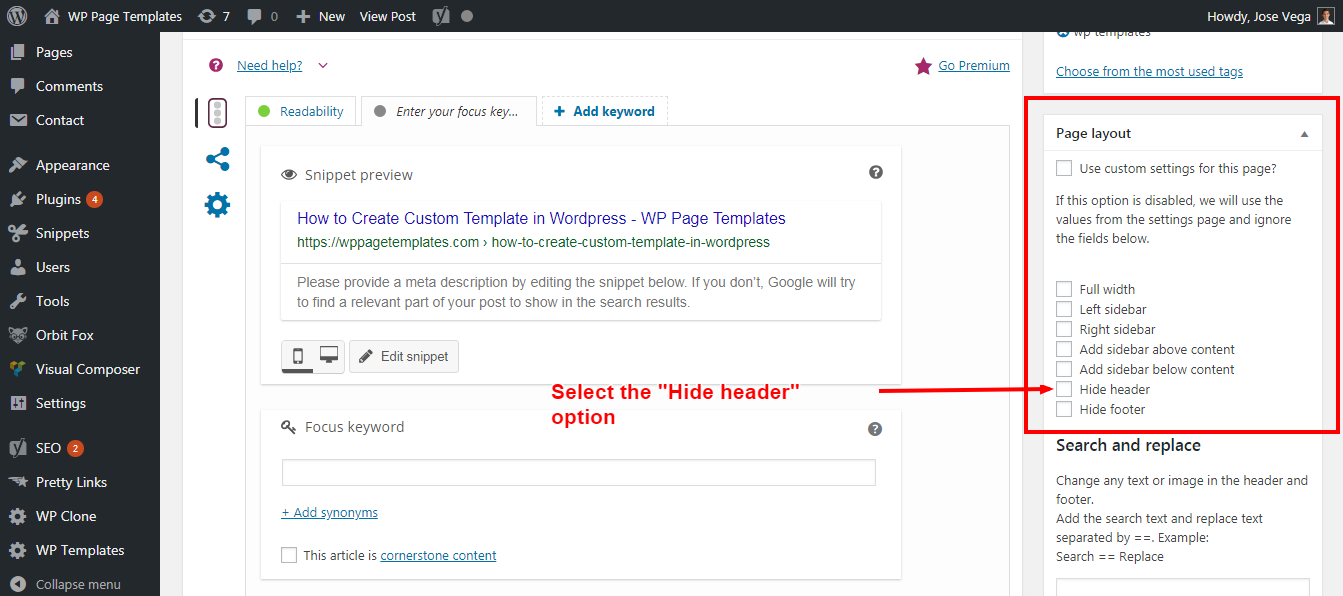 You will see multiple options for tweaking the page template. These options can be set globally (for all pages) or on individual pages.